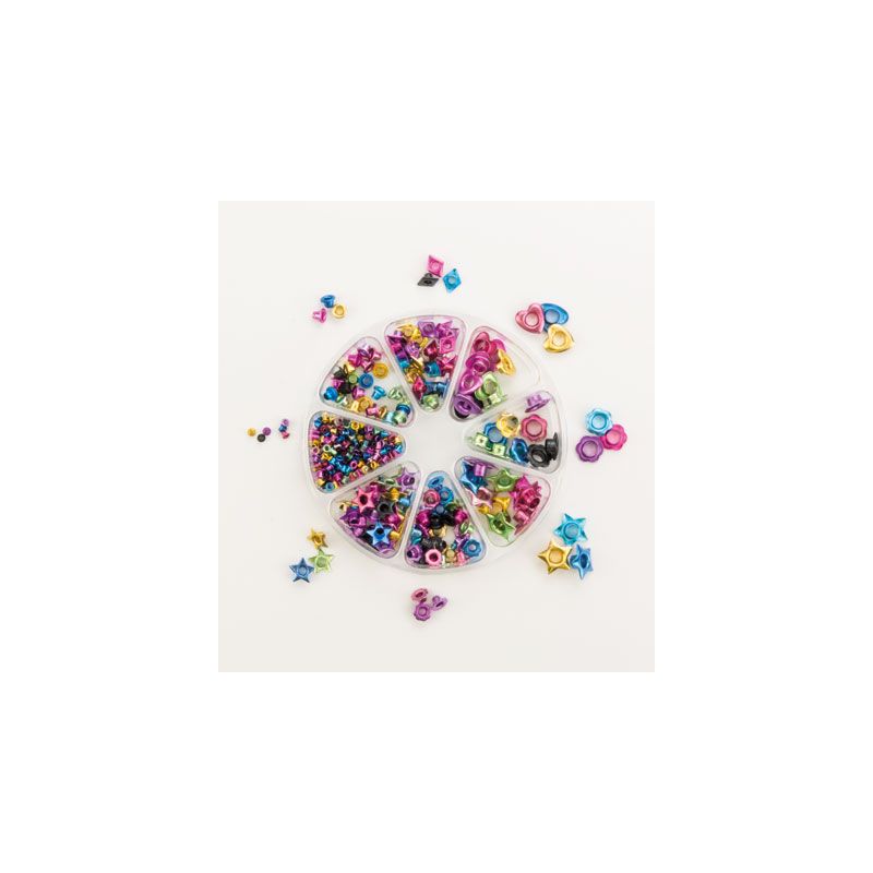 Lot de 406 œillets de couleur, de taille et de forme différentes.