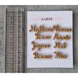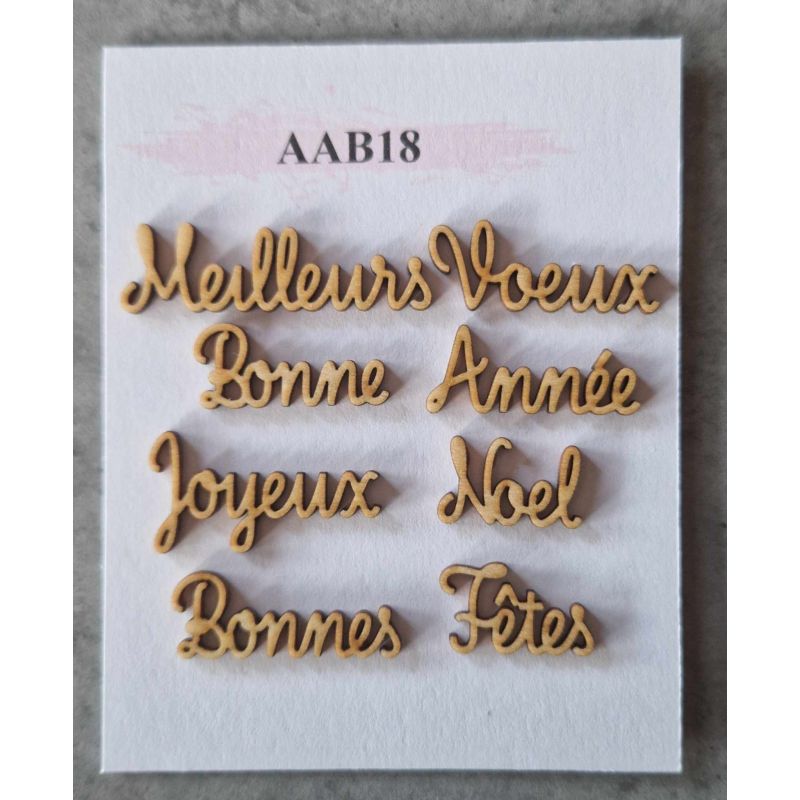 Ensemble de 8 embellissements en bois sur le thème Mots Fêtes de fin d'année de la marque Art Avenue pour décorer vos créations.