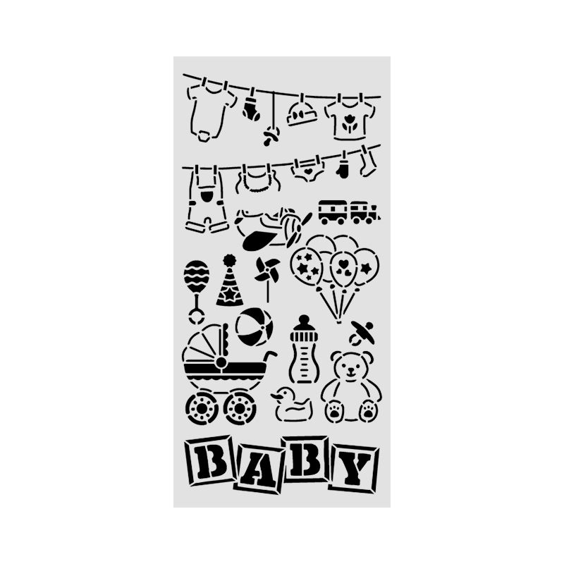 Pochoir Baby Elements de la marque Stamperia idéal pour réaliser vos fonds de page de scrapbooking ou vos projets carterie et home déco.