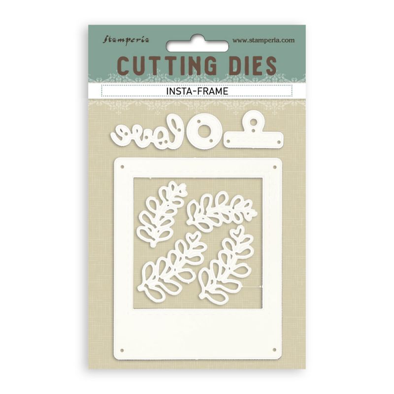 Ces 8 matrices de découpe de la marque Stamperia vous permettront de découper un cadre insta et ses accessoires.