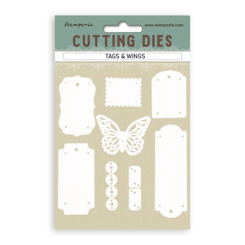 Ces 8 matrices de découpe de la marque Stamperia vous permettront de découper des Etiquettes et des Ailes.