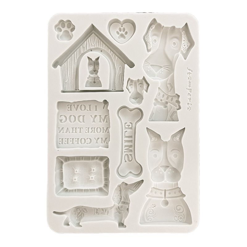 Moule en silicone format A5 de la marque Stamperia collection Furry Friends J'adore mon chien idéal pour créer des embellissements 3D pour vos pages de scrapbooking, vos projets carterie ou home déco.