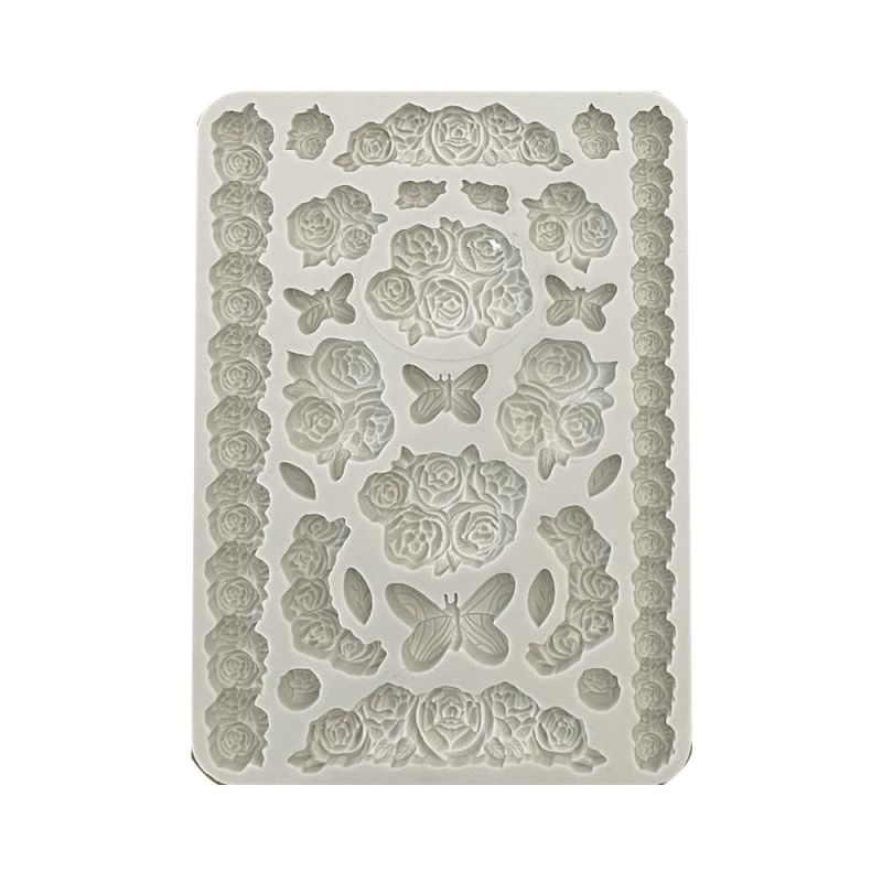 Moule en silicone format A5 de la marque Stamperia collection Shabby Rose Roses et Papillon idéal pour créer des embellissements 3D pour vos pages de scrapbooking, vos projets carterie ou home déco.