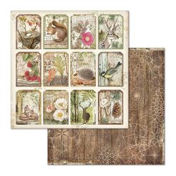 Assortiment de 10 papiers double face de la marque Stamperia de 30,5 cm x 30,5 cm ayant pour thème Forest.