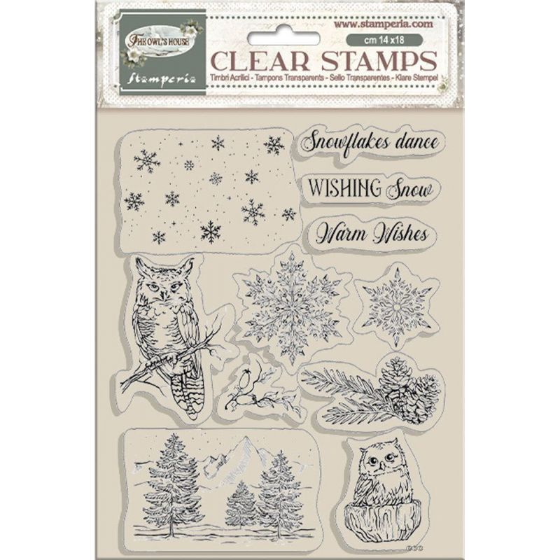 Set de tampons Transparents de la marque Stamperia sur le thème The Owl's House. Ces tampons seront parfaits pour décorer vos pages de scrapbooking et vos cartes.