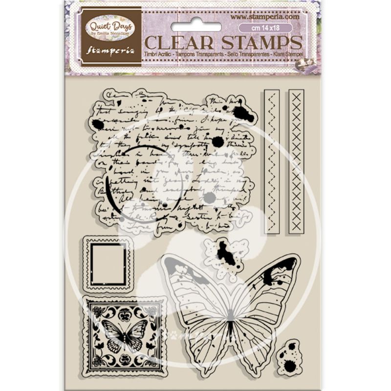 Set de tampons Transparents de la marque Stamperia sur le thème Quiet Days. Ces tampons seront parfaits pour décorer vos pages de scrapbooking et vos cartes.