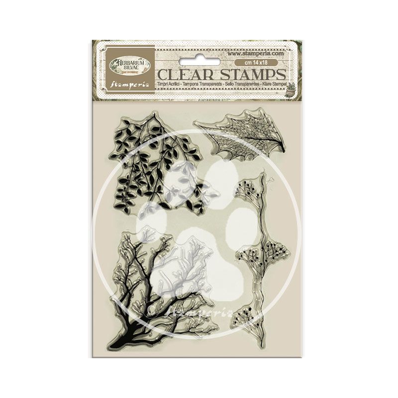 Set de tampons Transparents de la marque Stamperia sur le thème Herbarium Silvae Tree Branches. Ces tampons seront parfaits pour décorer vos pages de scrapbooking et vos cartes.