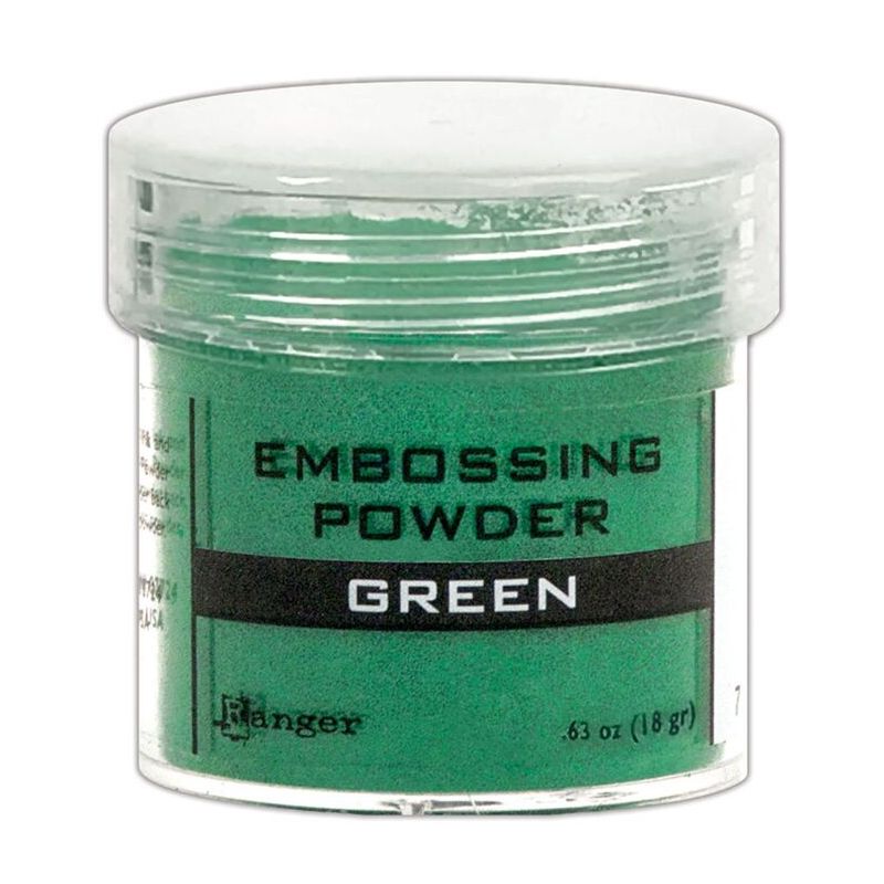 Avec une encre collante et la Poudre à Embosser Green, vous pourrez embosser, mettre en relief à chaud, des motifs tamponnés en vert.