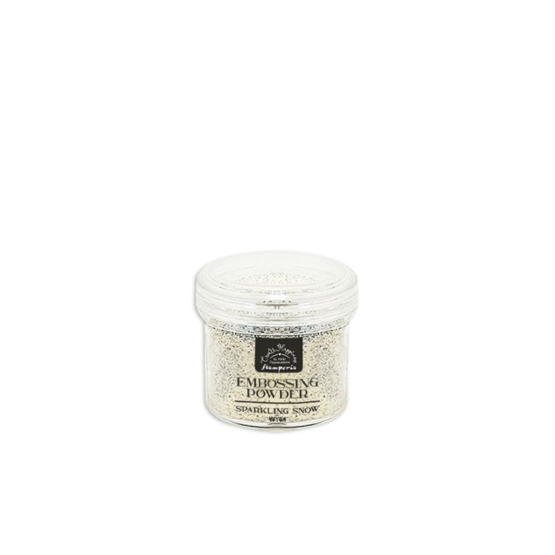 Avec une encre collante et la Poudre à Embosser Neige Scintillante, vous pourrez embosser, mettre en relief à chaud, des motifs tamponnés.